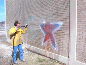 before treating again. After paint has been removed you can reduce the cleanup time of future graffiti by applying PROSOCO Block Guard/Graffiti Control. This product will serve as a barrier between the brick and the graffiti. It will allow the paint to be removed very easily without having to reapply the product after cleaning. As always a small test panel should be done to determine results. DO NOT USE MURIATIC ACID! |
