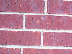 | A phenomenon that sometimes occurs with new bricks is lime pops. Lime pops are caused by small particles of lime that are located near the surface of the brick. When the brick absorbs moisture, the lime particles swell and cause portions of the brick face to "pop" off. The result are small pits in the surface of the brick with a white spot in the center. The white spot is the lime particle. The picture below is an example of lime popping. |